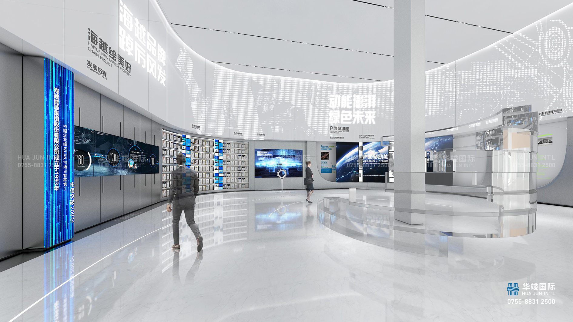 海越新能源產(chǎn)業(yè)園展廳設(shè)計項目由華竣傾心打造,順應(yīng)新時代大數(shù)據(jù)發(fā)展特性,采用先進(jìn)尖端的互動展項設(shè)置,營造展項新穎、互動有趣的產(chǎn)業(yè)體驗中心;充分利用建筑原有的玻璃幕墻以及挑空空間,引入地方特色元素,秉承世界眼光,國際視野的前沿設(shè)計理念,注重室內(nèi)外景觀交融,打造一座國際化、現(xiàn)代化的新能源產(chǎn)業(yè)園展示中心。